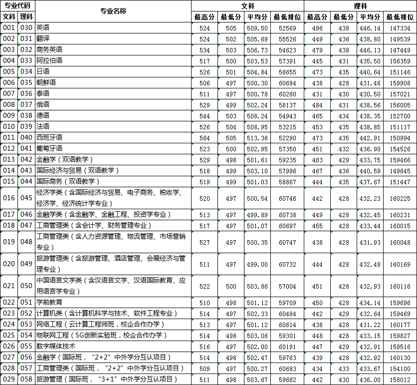 2019年广东各专业录取分数及排位情况统计